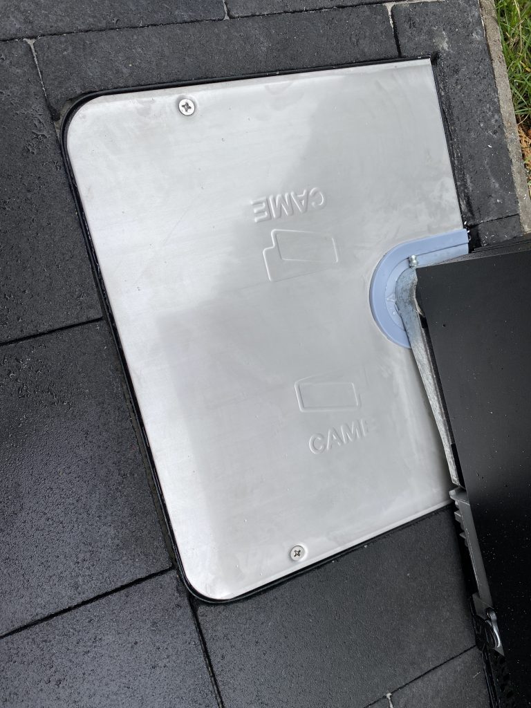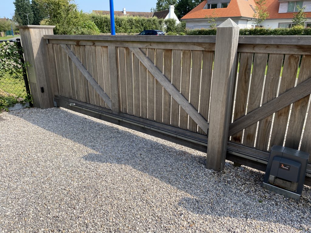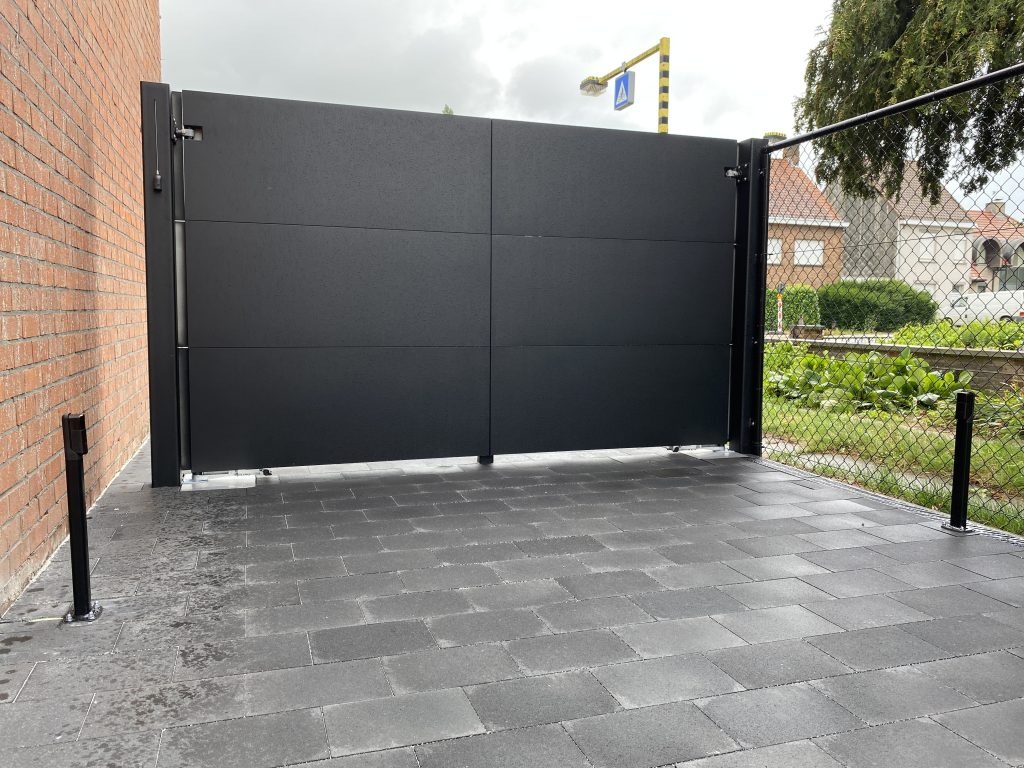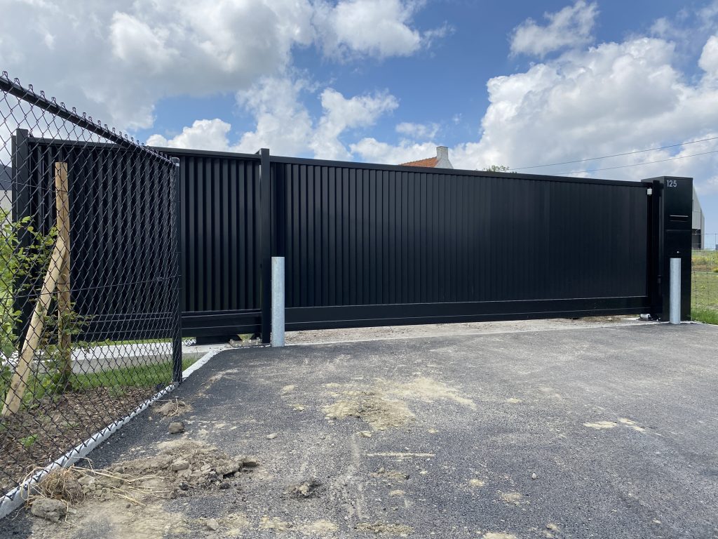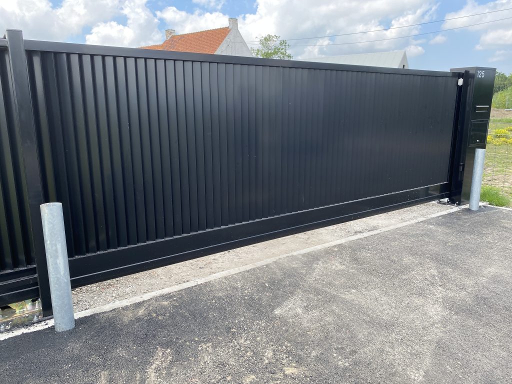 Zelfdragende schuifpoort met aluminium opbouw en aansluiten brievenbusconsole.